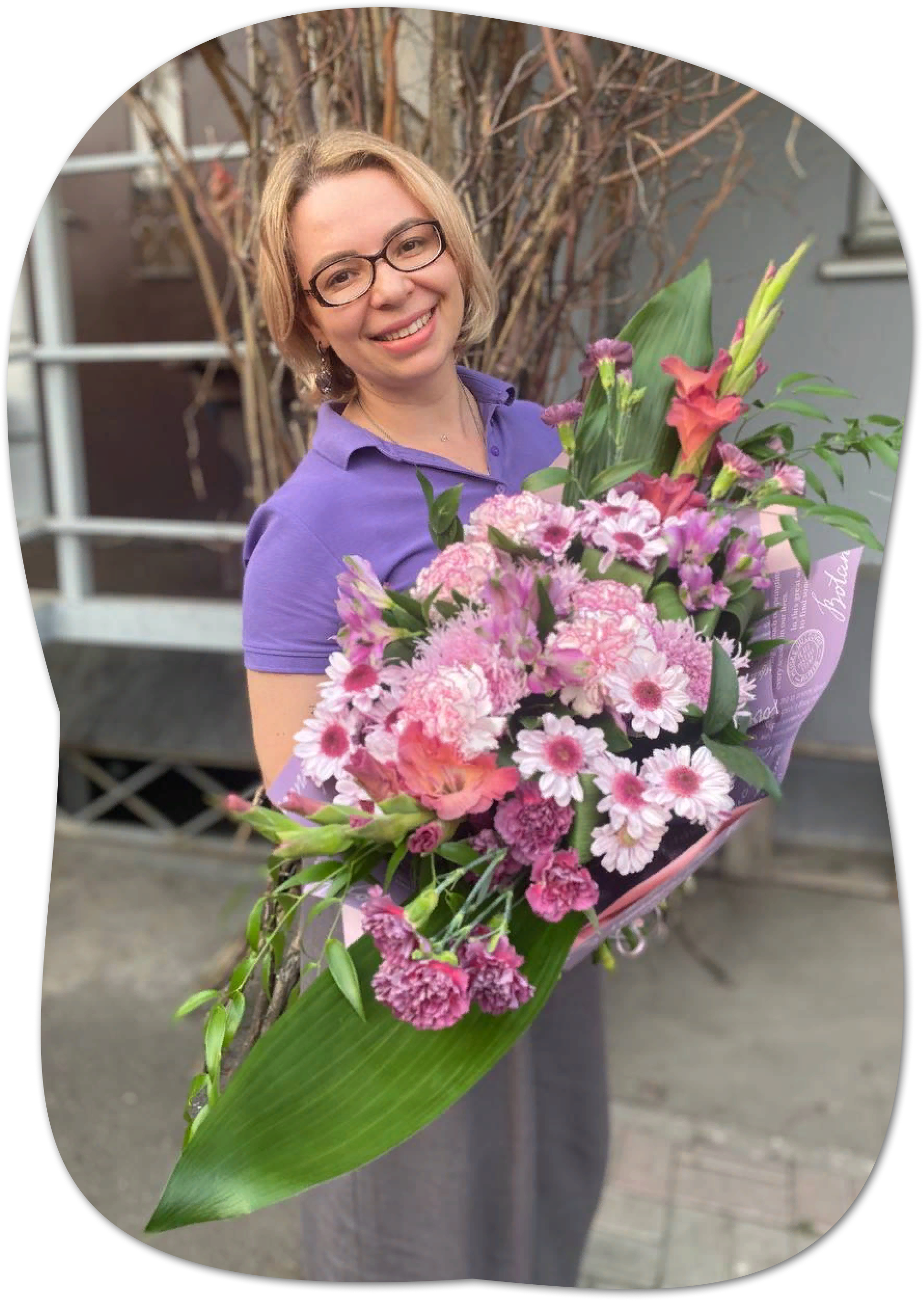 ЯЗинаида - человек сияющий и готовый дарить свет людям, с большой любовью и заботой, вкладывая его в наши букеты из цветов!